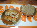 | sun.16.March 昨夜は結局3時半頃まであーでもない、こーでもないとやってしまって おまけに今朝は8時半に目がさめてしまった。 しかし寝たらHPのやり方忘れてしまったようで、どうにも進まず、 仕方がないので、キルトをやった。 ダンナが15時頃大阪から帰ってきたので、色々画像の事とか聞いたのだが、なんだかやっぱり分からない… 夕方から猛烈な睡魔が… でも今日の夕食はお土産の「蓬莱」の餃子としゅうまい♪ 豚まんは夕方おやつに食べた。 あとはチャーハンを作っていただきまーす! しゅうまいがとってもおいしい。食べきれないと思ったけど3人でぺろりと平らげてしまった。 またへなちょこな夕食になってしまった… |