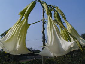 この間咲き始めたエンジェルトランペットが満開になりました。