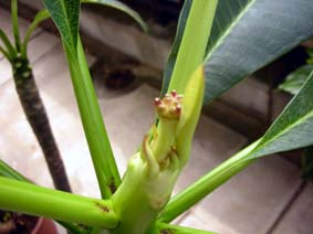 プルメリアにまた花芽がつきました!がんばって成長して欲しいなー!