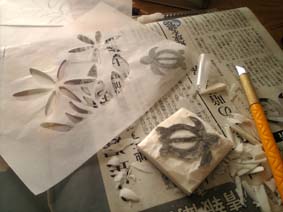 本日の手作りcafeのお題は「消しゴムはんことステンシル」