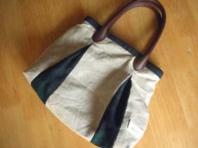リネンとBWを組み合わせての手提げバッグ。