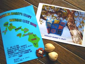 2005.7.2 藤沢でホクレアマミーズクラフトの作品展がありました。 見に行くのは今年で4回目になりますが 年々盛大になっていくようです。 今日も沢山のお客さんが来ていました。 今年もネッ友のMIHOさんと一緒にいったのですが MIHOさん今回は2作品も飾られてて、すばらしい!!! サンプラーズと1メートルタペ。どちらもすごく素敵でした。 ハワイアンキルトのデザインにも流行があるのか 今日見たキルトは多色使いで絡みのあるものが多かったように思えます。 またデザインがどんどん繊細になっていくような気がして 細かいけどすごくきれい。 入り口付近に飾られていたマイレと4本のレイの2メートルタペは ほんとにほんとにすばらしい。 でも、相当細かかったようで、製作者の方も苦労されたそうです。 そのほかに、ハワイアンのドールハウスがあったり ワンちゃんの洋服があったりとっても楽しめました。 ウクレレの演奏会も聴けたし満足なひと時でした。 ![]() |