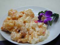 | 豚肉のにんにく風味 | 海老とフルーツのマヨネーズ和え これ、とっても美味しかったです |