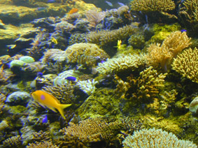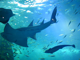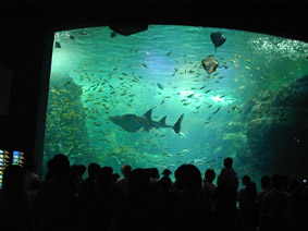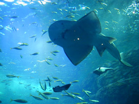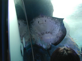 | メインの大きな水槽にはサメやエイもいて ゆっくり泳いでいたよ 大きくってびっくり!! |