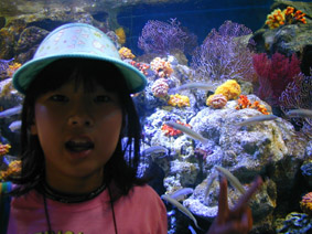 | たくさんの人がいて なかなか水槽の近くまで行くのが大変… でも、やっと近くにいけたよ。 きれいな魚がたくさんいたよ |