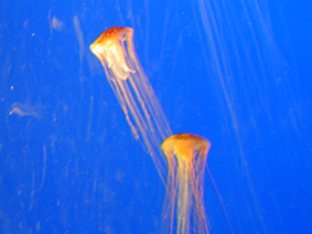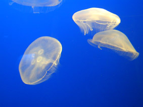 | えのすい名物のたくさんのクラゲたち… ふわふわふわり… ノーンビリしてるようだけど 触ると痛いんだろうなー… |