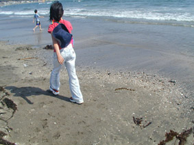 | 由比ガ浜はたくさんの人がいました。 海に入って遊んでる人もいたし バーベキューをやってる人も… それを狙ってるトンビもたくさん(笑) |