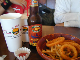 | ふらふら遊んだ後は、やっぱりここに! おいしかったー! ハワイのビールは、かなり苦味が利いてて これを飲んだら、普通の生ビールは ちょっと物足りなかった〜! |
