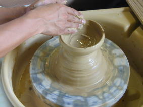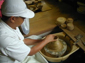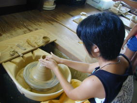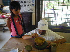 まず最初は陶芸。 ろくろが回せると聞いて パパは大張り切り! |