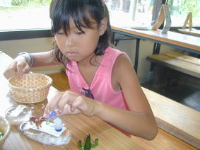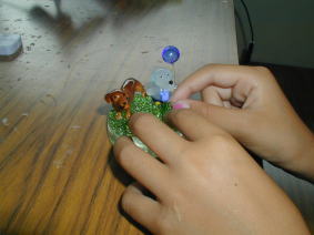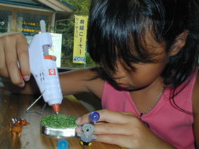 | 凪沙はガラスの動物達を台にはりつけて かわいい置物を作ったよ |