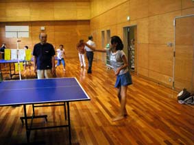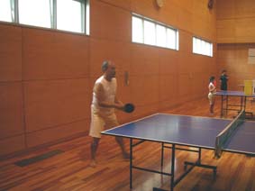 今度はそばにある簡保の宿で卓球(笑) またまた、かなりがんばってました。 汗びっしょりです… |