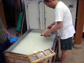 | 五箇山の道の駅そば 和紙の里で 五箇山和紙つくりの体験をしてみました。 |