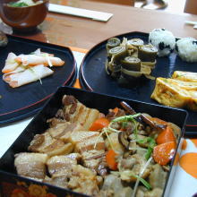 | ばーちゃんが作ったお料理は たくさんでテーブルにのらなかったよ。 みんなおいしかったよ |