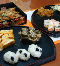 黒豆いりご飯 肉まきこんぶ かまぼこのわさびクリームチーズ和え |
