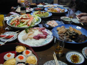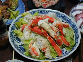 | ぱぱのお友達が築地の市場から買ってきてくれた タラバカニ 他にも、すっごいたくさんのマグロと すっごいたくさんのイクラで もうなぎさは大満足♪ でも、なんだか、食べたあとだったねー(笑) |