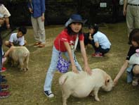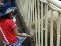 | ヒツジに えさをあげてます。 沢山食べてね♪ |