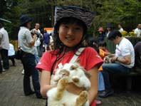 | ウサギを抱っこ。 おもいな〜ちょっとおデブちゃん? |
