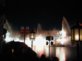 そしてメインエンターテイメント ディズニーシンフォニー デイズニー音楽に合わせて 光と水が次々とふんすいのようにうちあげられる とってもきれいなショーでした |