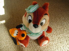| そうそう! 二つもぬいぐるみを買っちゃった! プルートとチップ! うれしいなー! |