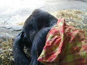 正解は… ゴリラです(笑) こんな近くで沢山人が見てるのに お布団かぶって グーグー寝てました(笑) |