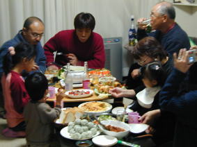 | 食べてのんで。みんないっぱいおしゃべりして 楽しいね! |
