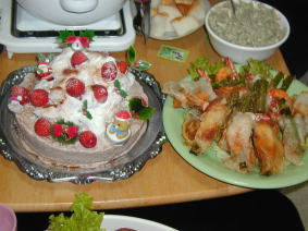 | ママがいっしょうけんめい作ったおりょうり。 すごいなー! これみんなパソコンのお友だちの チンさんにおそわったんだって! |