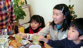 大人はスパークリングワイン 子供はジュースで メリクリのカンパイ !! |
