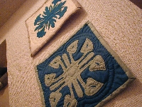 小さいタペストリーを並べて飾っています。