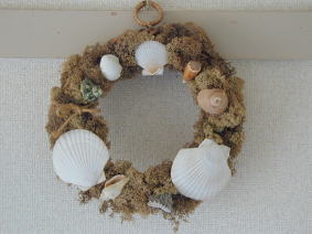 | 貝殻や珊瑚をつけて さわやかリース |